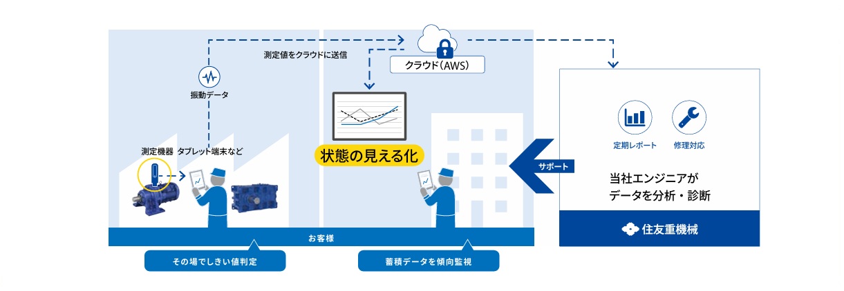 クラウドを利用し住友重機械工業とデータを共有し、スペシャリストによるモニタリングの例